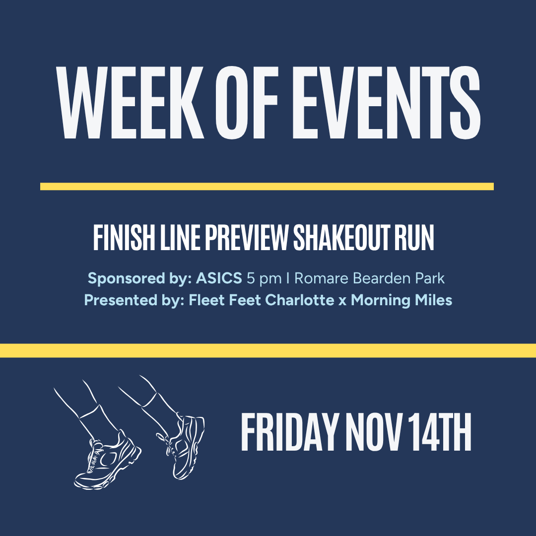 Shake out those legs one last time before race day and get a first look at the finish line! Join us on Friday, November 14th, at 5pm at Romare Bearden Park for a 3 mile shakeout run like you have never seen before, sponsored by ASICS and presented by Fleet Feet Charlotte x Morning Miles. This is guaranteed to get you ready to roll into race day with inspriation, excitment and the feeling of "I made it."